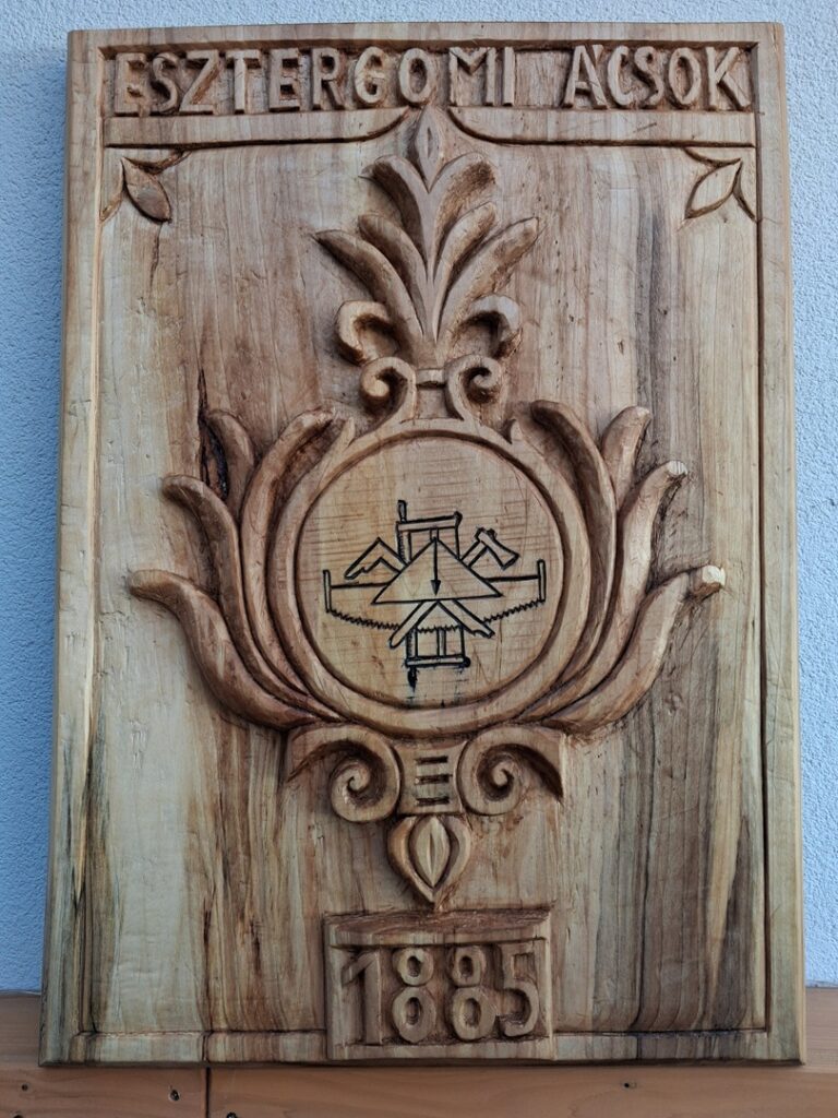 Ez a remekmű a közelgő mesteravató ünnepélyünk alkalmára készült társaságunk számára. Készítője előtt ezúton is tisztelgünk, aki nem más, mint kedves segítőnk édesanyja: Prohászkáné Jablonszky Éva fafaragó művésznő. Nekünk szánt alkotása nemcsak tehetségét bizonyítja számunkra, hanem irántunk tanúsított önzetlenségét is kifejezi.